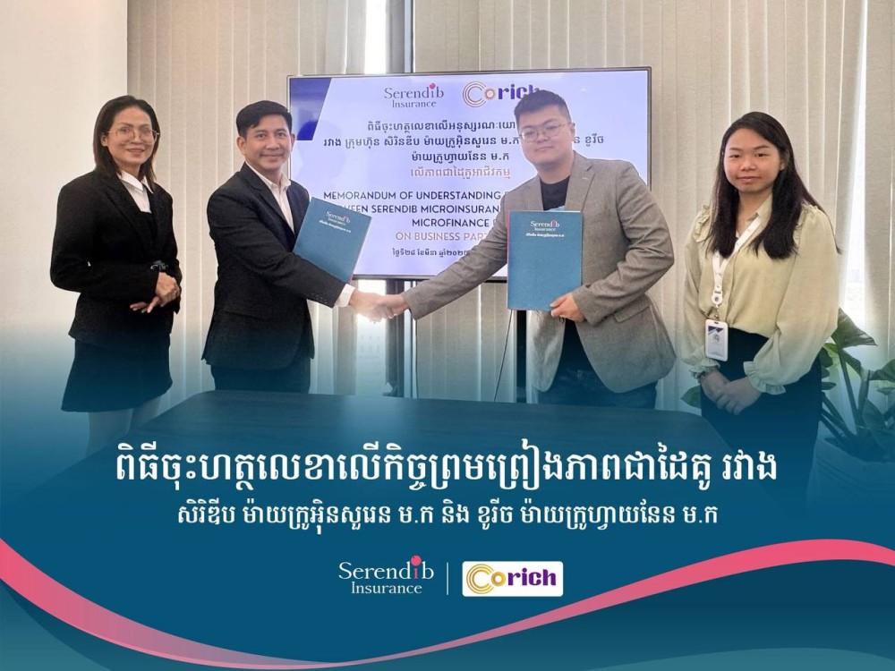 Serendib Microinsurance Plc and Corich Microfinance Plc are pleased to announce the signing of a Memorandum of Understanding (MOU) to form a strategic business partnership. This collaboration aims to enhance financial inclusion and provide essential financial protection services to institutions and the people of Cambodia.